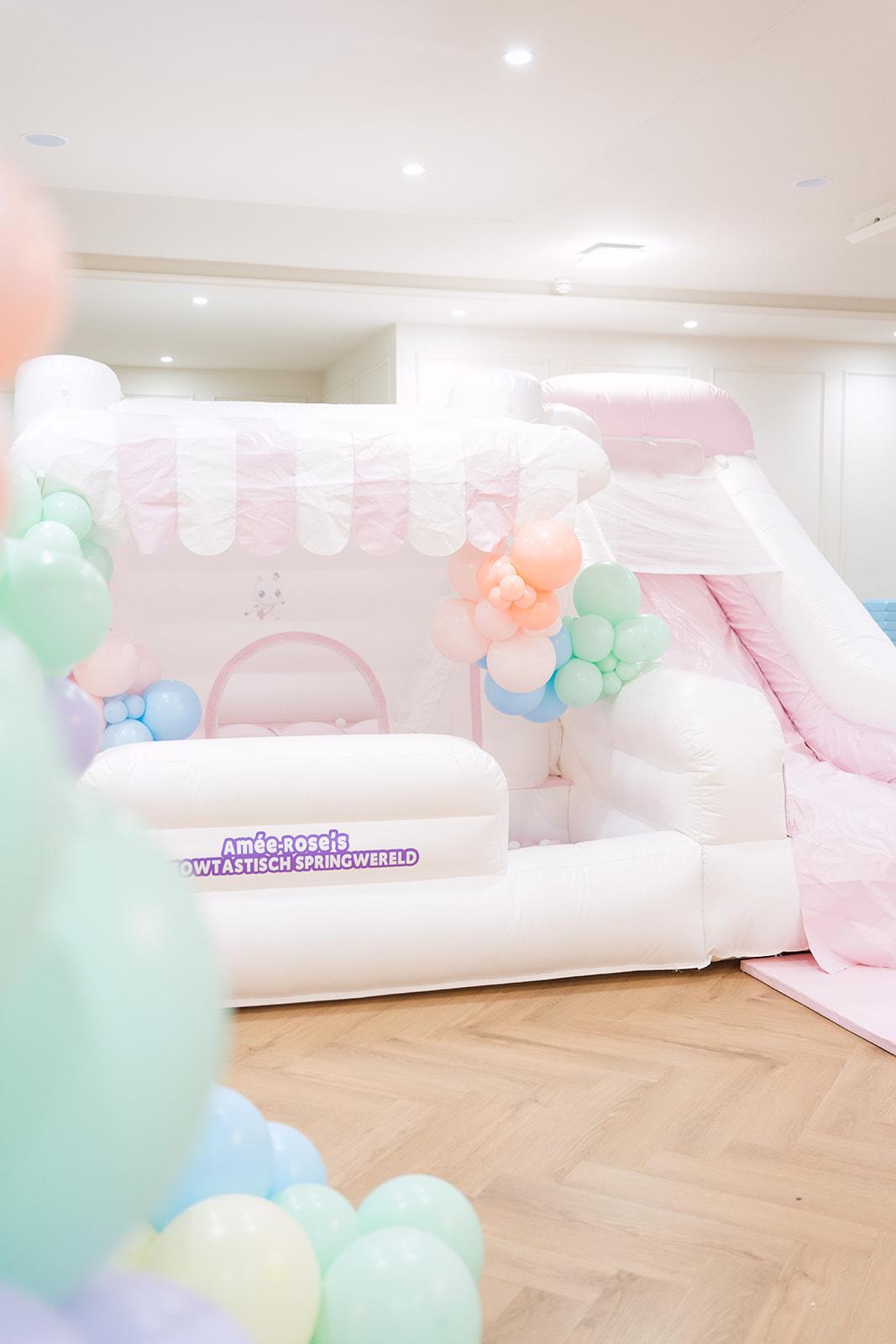 De roze ballenbak past o.a. prachtige bij een fairytale, Unicorn of ander leuk thema en wordt veelal gecombineerd met onze luxe springkussens Large of mini in de kleur pastel roze, wit of roze.